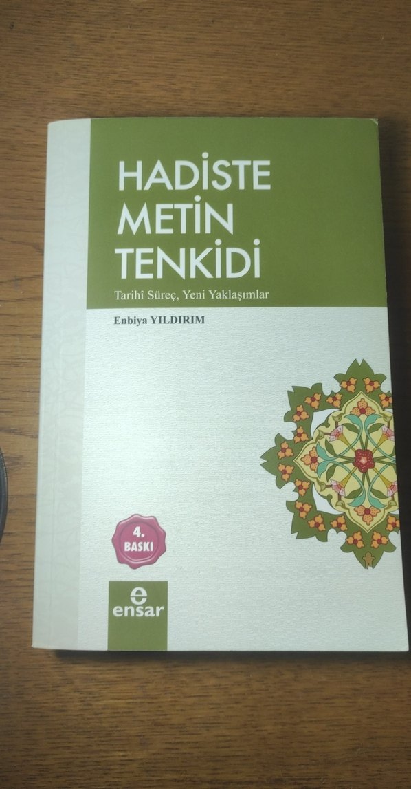 Enbiya Yıldırım'ın yazdığı 'Hadiste Metin Tenkidi' kitabı, hadisin metin tenkidine dair tarihi süreç ve yeni yaklaşımları içerir. Ensar yayınevi, 4. baskı. 600 sayfa