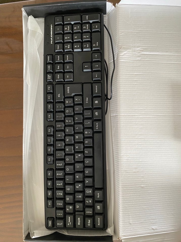 F klavye siyah renkli, kablolu ve standart tuş düzenine sahip bir klavye. Beyaz harfler okunaklı şekilde yer alıyor. ⌨️ Kablo kısmında çok az çıkıklar var ama çalışıyor sıkıntısı yoktur, katiplik sınavı için uygundur