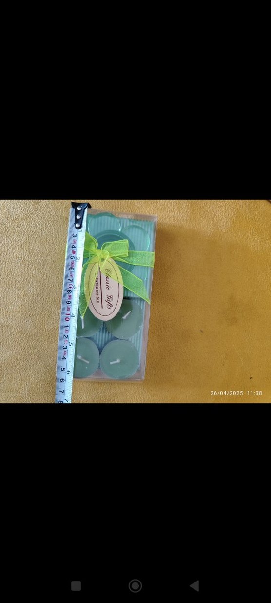 Hafif haki renkte, yeşil kurdele ile bağlanmış kokulu mum setidir. Kompakt boyutlarıyla dekorasyon veya rahatlama için uygundur. ️4 lü mum seti. 4 mum 1 mumluk