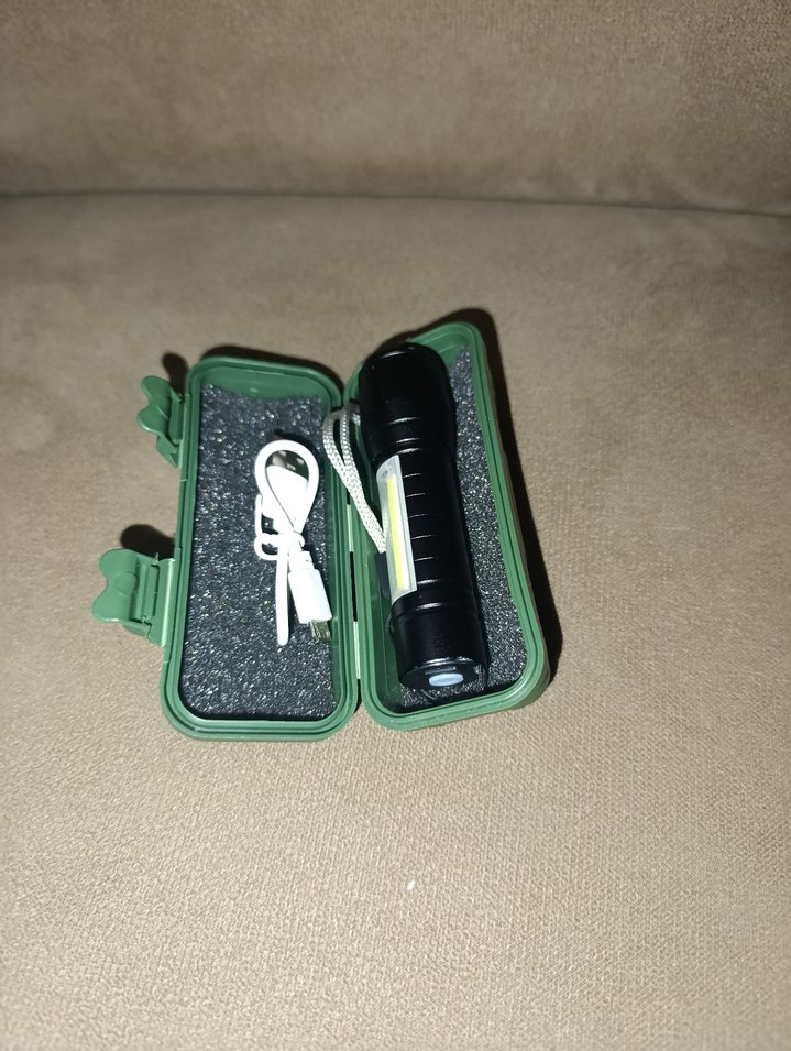 Hafif haki renkli kutuda taşınabilir power bank ve şarj kablosu bulunmaktadır. Kompakt ve taşınması kolaydır.