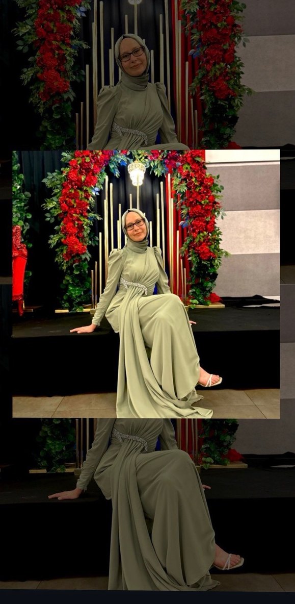 Hafif Haki Renkli Uzun Drapeli Kadın Abiye
