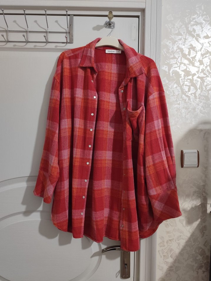 Hafif Kırmızı Çizgili Uzun Kollu Kadın Gömlek - Görsel 1