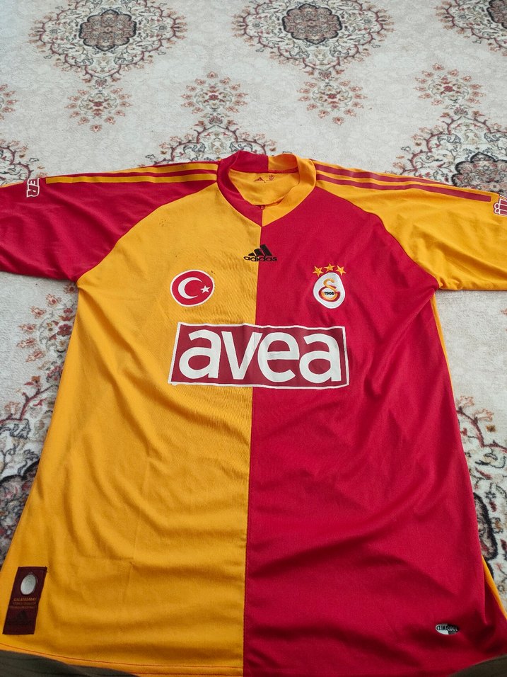 Kırmızı-sarı renklerde, kısa kollu, yuvarlak yakalı, bol kesim erkek spor forması. 'avea' logosu ve cırt cırt detayları bulunur.