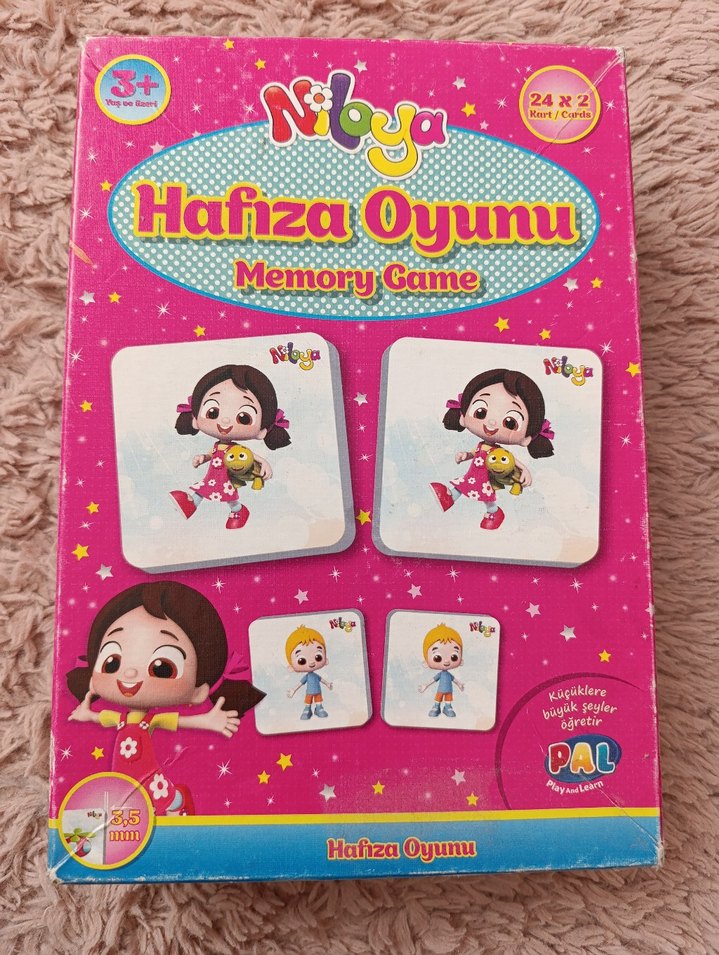 3 yaş ve üzeri çocuklar için renkli, 24 çift kartlı hafıza oyunu. Renkli çizgi karakterlerle hafıza becerilerini geliştirir. ürünün eksik parçası yoktur