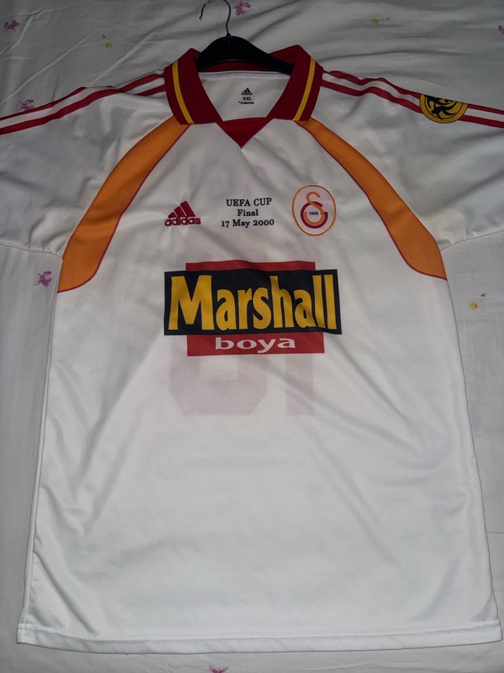 Beyaz Adidas erkek forması, kısa kollu ve bisiklet yaka, baskılı "Marshall boya" ve "URFA CUP" detayları bulunur. Velcro özelliği vardır, sportif ve şık görünüm sunar. ⚽
