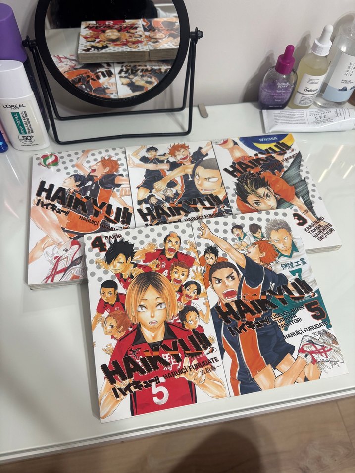 Haikyu!! manga seti, beş cilt mevcut ve set halinde satıyorum. Hiç bir hasarı yoktur ve son fiyattır
