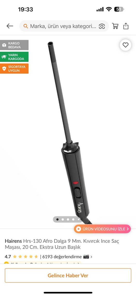 Hairens Hrs-130 Afro Dalga 9 mm maşası, ince kıvırcık saçlar için uygun, siyah renkte, detaylı dalgalar yaratır. ⚡harıka bır kaç kez kullandım saçım ınce tellı oldugu ıcın yapmadm