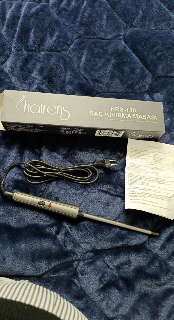 Hairens HRS-130 gri saç kıvırma maşası, ince varili ve kullanımı kolay açma/kapama düğmesiyle saç şekillendirme için uygundur. Pakette kullanım kılavuzu da bulunmaktadır.