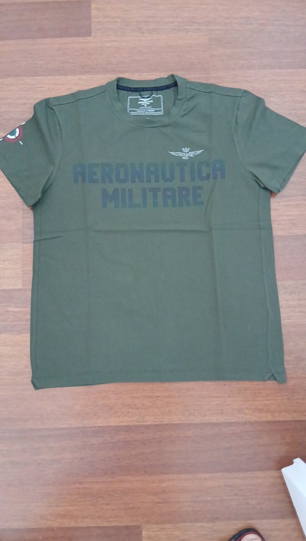 Haki renk, kısa kollu, yuvarlak yaka, bol kesim erkek tişört. "MILITARE AERONAUTICA" baskılı , spor ve sokak stili için uygun. ♂️