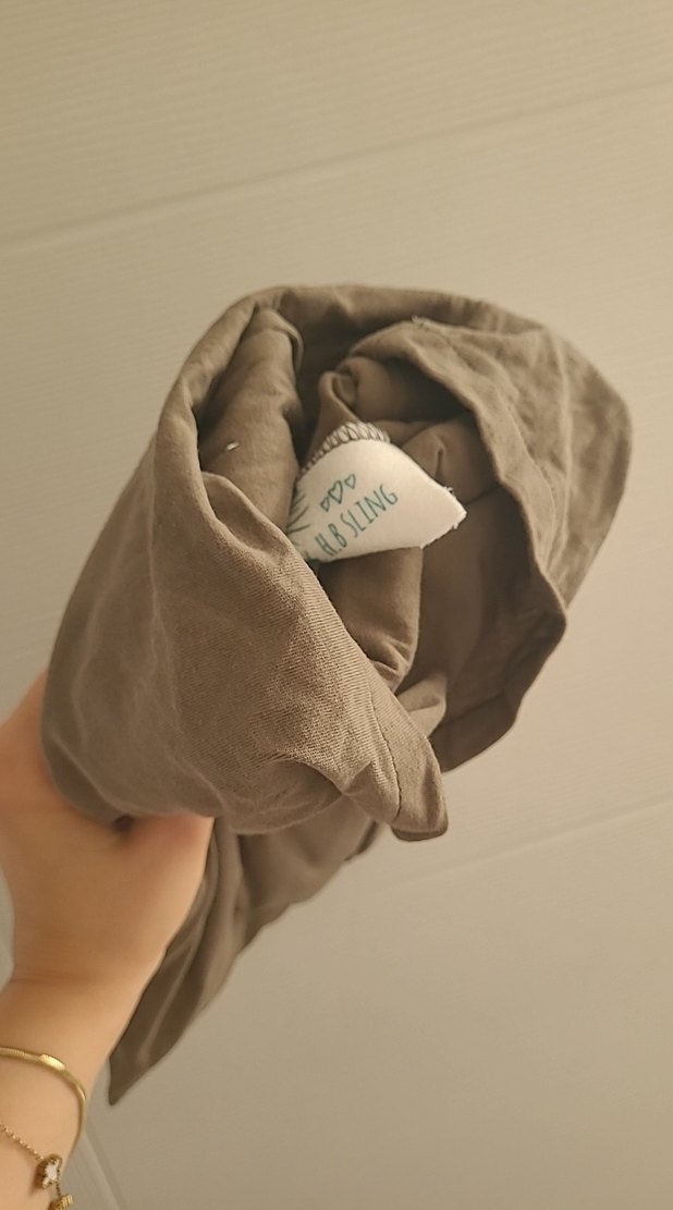 Haki renklerde, yumuşak ve rahat kumaştan yapılmış bebek slingidir. Bebeğinizi güvenle taşımanızı sağlar.