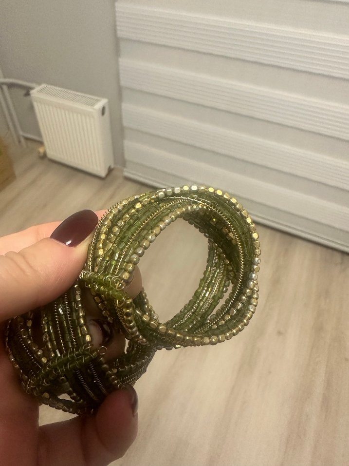 Haki boncuklu çık, peçwtelik. sunum, bohem ve göz alıcı tarz sunar, günlük kullanıma uygundur.