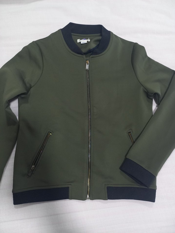 Bu koyu yeşil kadın bomber ceket, fermuarlı ön kısım, yuvarlak yaka ve uzun kollara sahiptir. Sentetik kumaştan üretilmiş, regular fit ve sokak stili ile günlük kullanıma uygundur.