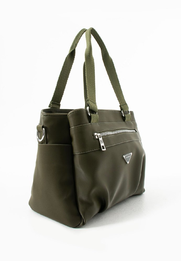 Haki deri çanta, fermuarlı cepleri ve sade tasarımıyla günlük kullanıma uygun, çağdaş stil sunar. Pazarlık yok son fiyattır.