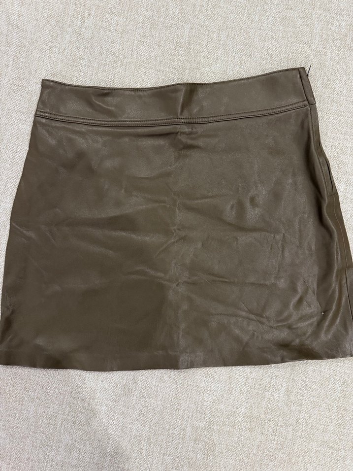 Haki deri, düz tasarımlı bu mini etek, sokak stili için uygundur. Sadece kırışmış hurçta durduğu için. Neredeyse hiç kullanmadım.