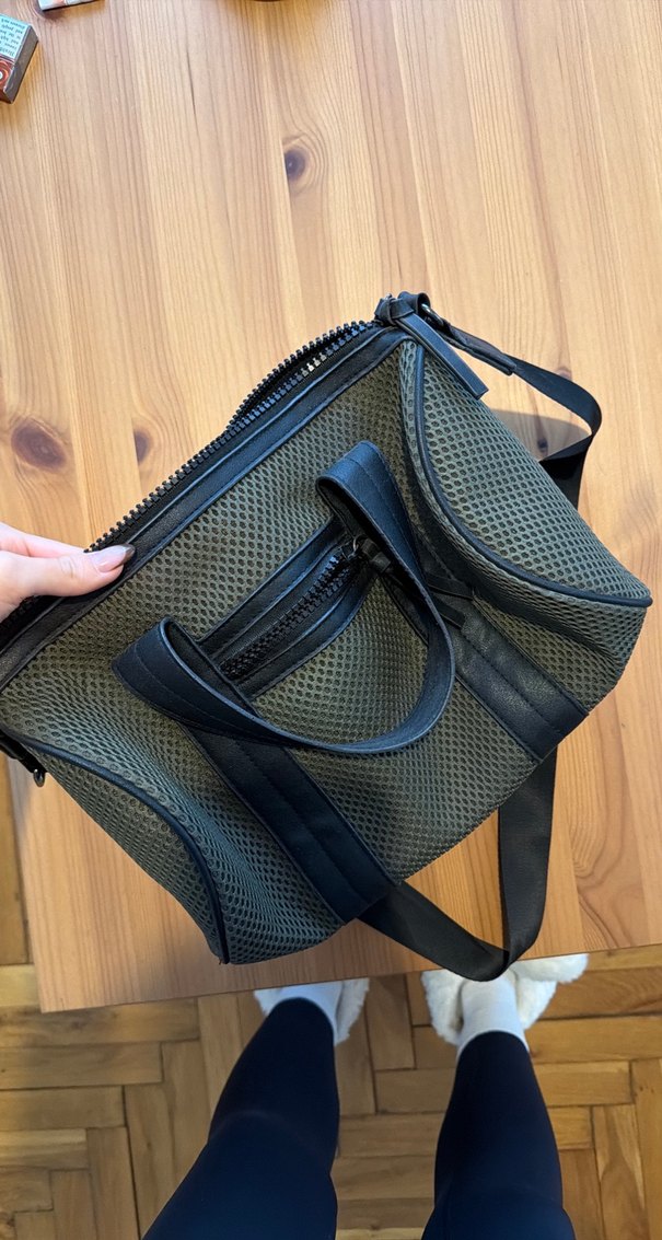 Haki renkte deri yılan desenli, fermuarlı spor tarzı kadın çantasıdır. Trendsetterlar için çağdaş ve şık bir seçimdir.