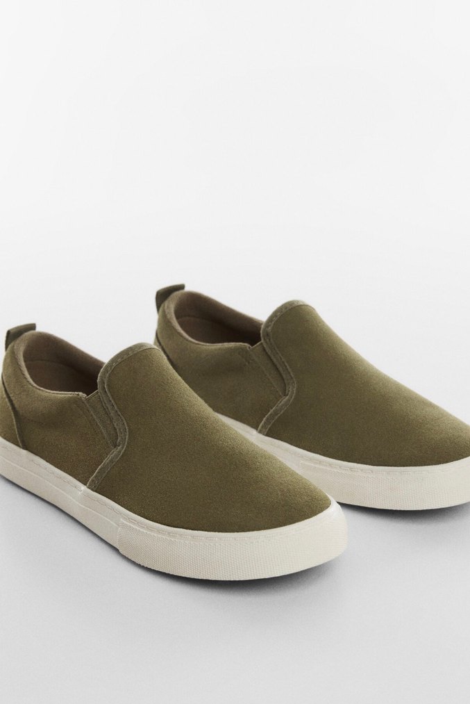 Haki renkte, kauçuk tabanlı, temiz tasarımlı kaydırmalı erkek çocuk ayakkabısı, günlük sokak giyimine uyum sağlar. Minimalist tarz için ideal. Etiketli ve orijinaldir