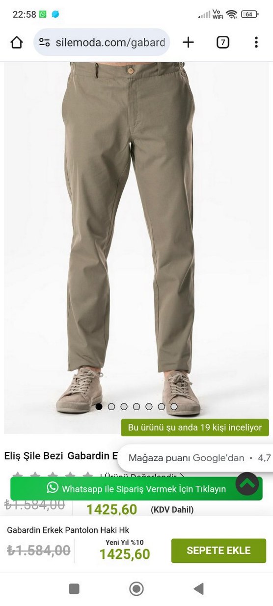 Kahverengi gabardin erkek pantolon, regular fit. Tamamen pamuktur. Ölçüleri : Boy : 102 cm Paça : 21 cm Bel : 40 cm Bel ile bacak arası mesafe : 27 cm
