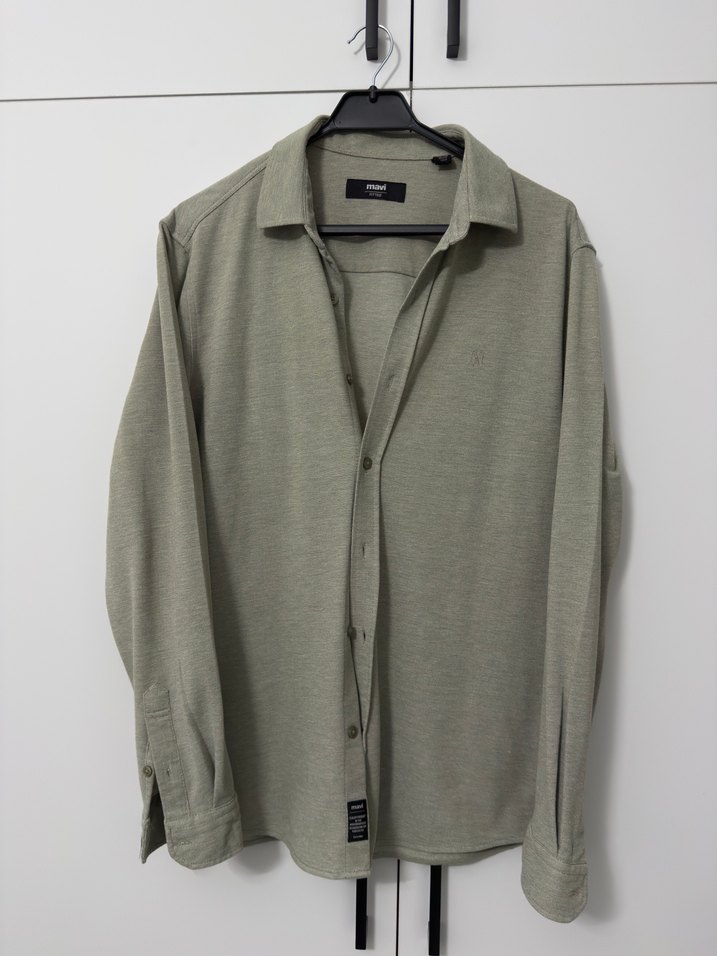 Haki Erkek Keten Uzun Kollu Gömlek
