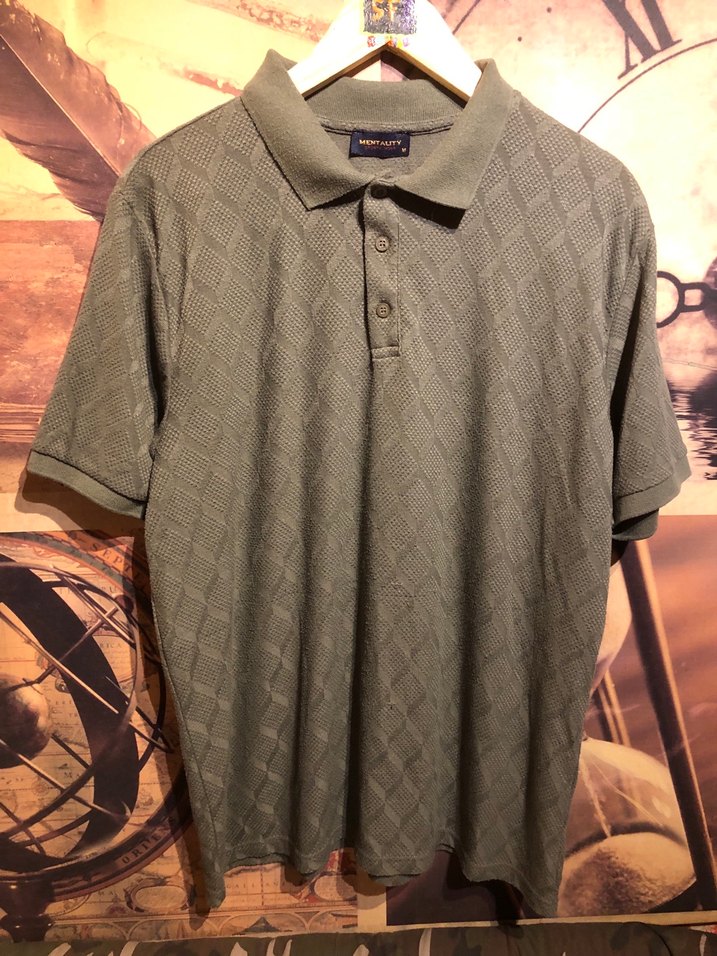 Haki renkte, düğmeli kısa kollu erkek polo tişört. Sentetik kumaştan, regular fit ve yakalı. Günlük kullanım için uygun.