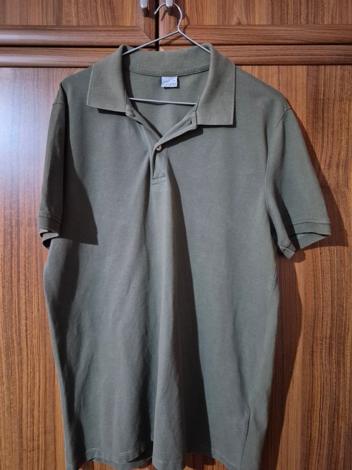 Haki renkli, kısa kollu, süet kumaştan erkek polo tişört. Regular fit ve desensiz, günlük kullanım için uygundur.