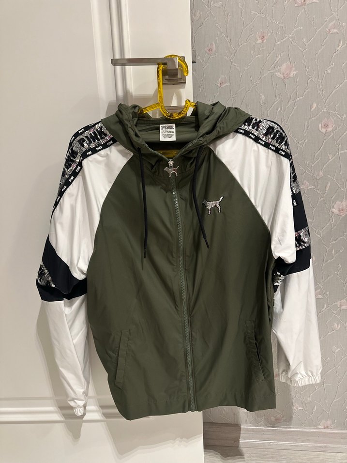 Haki ve gri renklerde baskılı, uzun kollu, bol kesim, yüksek yakalı erkek spor yağmurluğu. Fermuarlı ve sentetik kumaştan üretilmiştir. ️