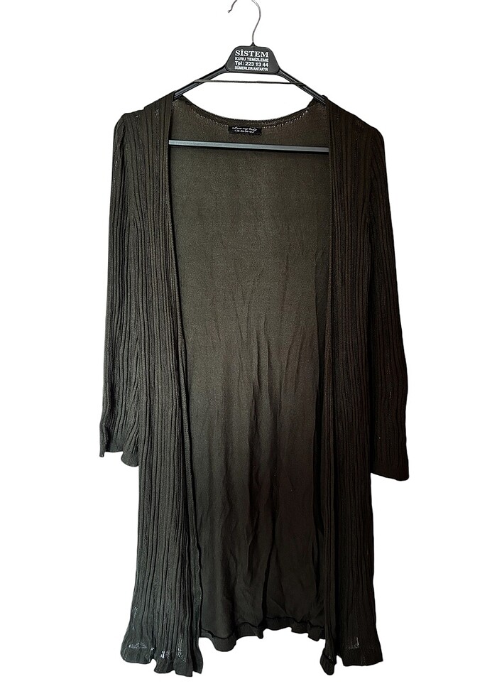 2 defa giyildi. İnce hırka İspanyol kol detaylı,ön kısmı salaş durur.
