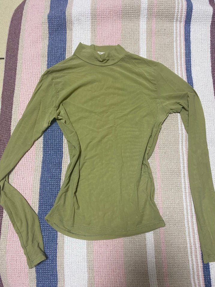 Haki renkli, balıkçı yaka ve uzun kollu transparan, rahat ve şık, günlük kullanıma uygun sade bluz. Bi kaç kere giyildi içinden büstiyerle çok güzel duruyor her bedene olur