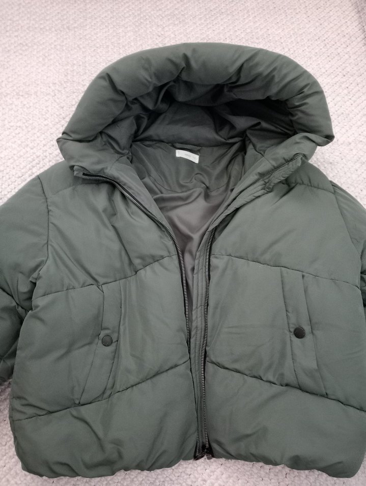 düğmeli, yaka kısmı kesik detaylı, uzun kollu, rahat ve sıcak tutan kumaştan yapılmış, günlük kullanıma uygun kadın kışlık kısa şişme mont