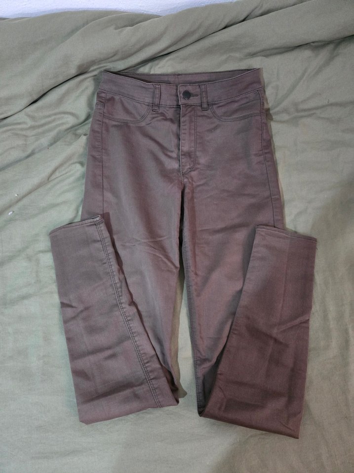 Düz renkli, haki kadın likralı pantolon. Rahat ve şık görünüm için sentetik kumaştan, günlük kullanıma uygun.