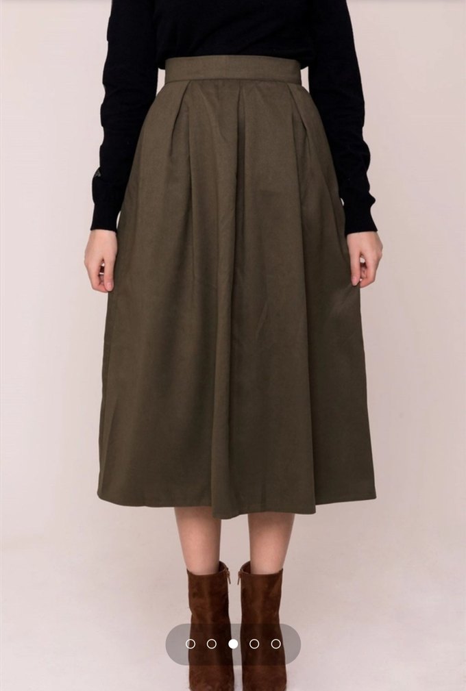 Haki renkli, pilili detaylara sahip, yumuşak süet kumaştan yapılmış midi boy, bol kesim etek. Günlük kullanıma uygun, rahat ve şık. Ürün kullanılmamıştır. Defosu, kusuru yoktur. Takas olur.