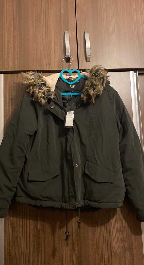 Haki renkli, salaş kesim kadın midi kaban. Uzun kollu, kürklü kapüşonlu ve yumuşak fleece kumaştan üretilmiştir. Günlük kullanıma uygun rahat bir modeldir. Only marka, etiketli