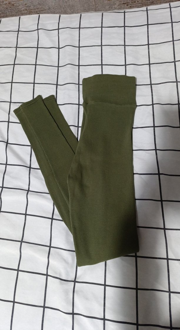 Koyu haki renkli, düz desenli, sentetik kumaştan yapılmış, rahat ve şık kadın taytı. Günlük kullanım için uygundur. ♀️