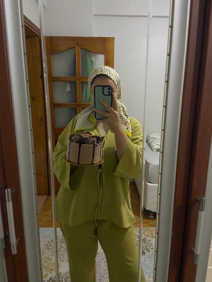 Salaş kesim haki kadın takımı, uzun kollu ve boğazlıdır. Yumuşak sentetik kumaştan üretilmiş, günlük sokak stili için uygundur. ✨