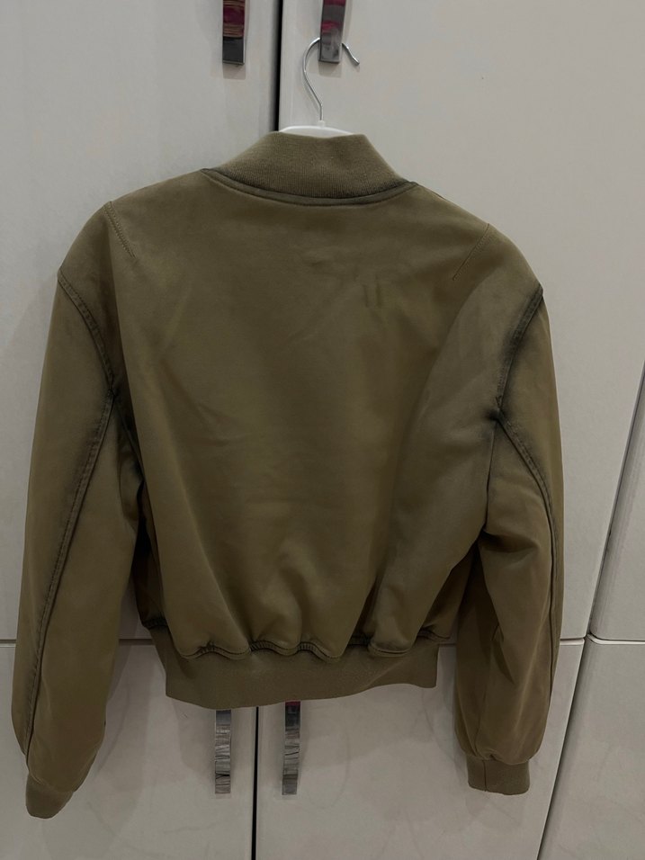 Haki Kadın Süet Fermuarlı Ceket Bomber