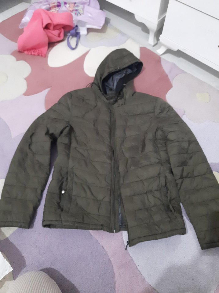 haki renkte, kapüşonlu ve fermuarlı normal boyda, rahat sentetik kumaştan yapılmıştır. Sokak stili için uygun, gençler için günlük kullanıma ideal. ❄️ ince sıcak tutar rüzgar yağmur geçirmez cebin birinde çıtçıt çıkmış gerisi yeni iyi durumda koldan kola54.boy 64.kok boyu 64 cnm