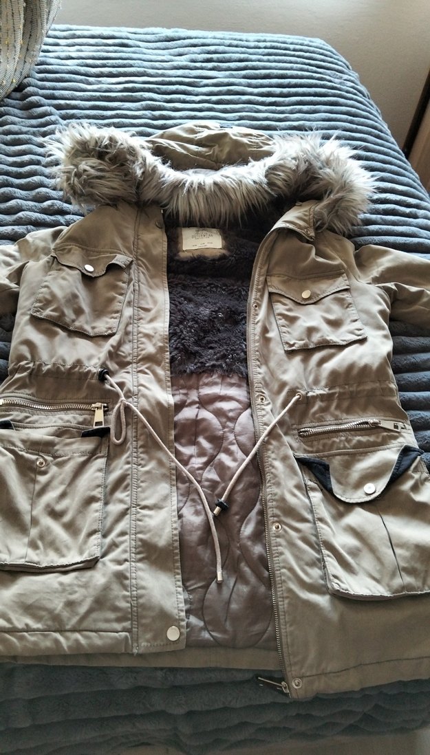 Haki renkli, kürklü kapüşonlu kadın kışlık mont. Yumuşak ve sıcak fleece kumaştan, normal midi boyda, fit kesim ve çok cepli. Günlük rahat sokak stili için uygun. ❄️