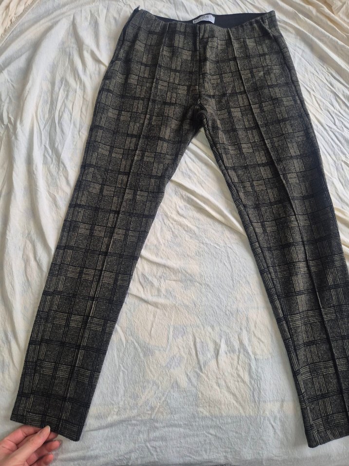 haki kareli kadın Pantolon