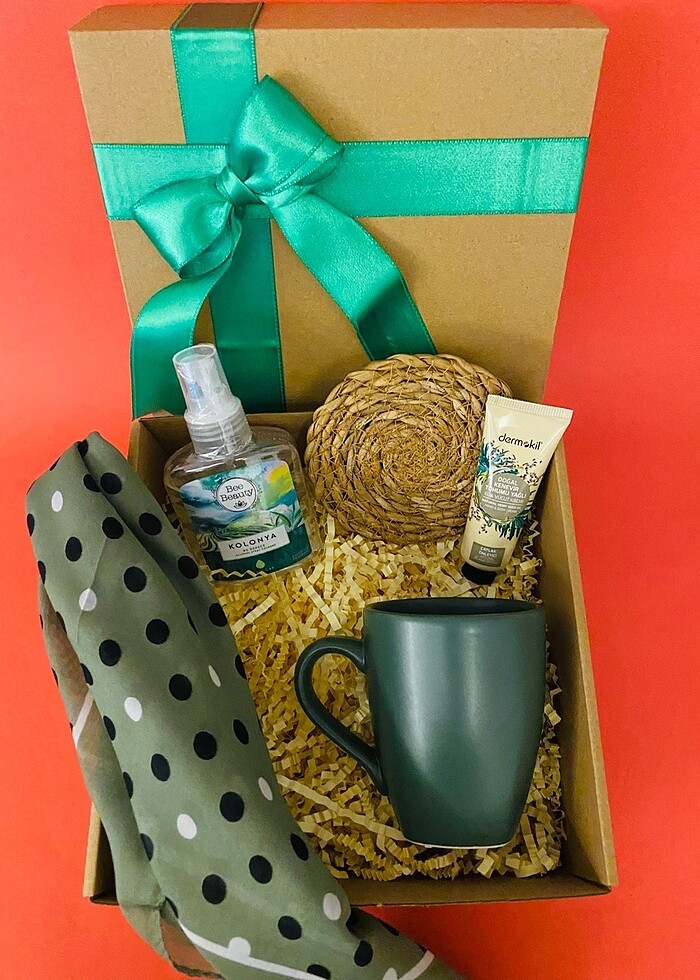 1 adet kupa 1 adet fular 1 adet kolonya 1 adet krem 1 adet bardak altlığı Özel paketlenmiş hediye kutusu ile gönderilmektedir