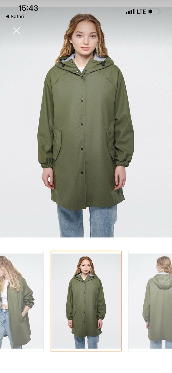 Gri midi boy, düğmeli, bol kesim kadın yağmurluk. Uzun kollu ve keskin yakalı, yumuşak ve sıcak kumaştan üretilmiştir.