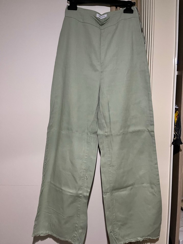 Haki renkte, midi boyda kadın kumaş pantolon. Rahat kesimli ve yumuşak sentetik kumaştan üretilmiştir. Günlük kullanıma uygun, zahmetsiz şıklık sunar. Fermuar dikilecek