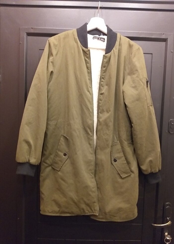 İçi merinos havasında sıcacık tutan haki mont..40 bedendir Almanya dan geldi..Kol manşetinde çok az tüylenme vardır..Fotolarda açık yeşil çıkıyor oysa çok güzel blr haki tonu.Kemer havasında blr bölümü var ama orda hiç kemeri olmadı bana da öyle geldi..