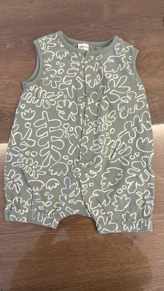 haki renkte, kolsuz, straplez yaka ve örgü dokulu kız bebek tulumu. Bohem desenli ve yumuşak keten kumaştan üretilmiştir.
