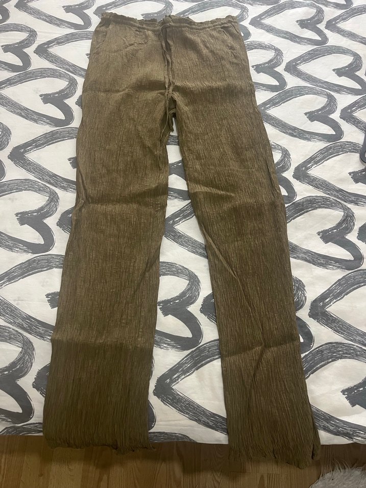 Haki renkli , uzun paçalı rahat kesim pantolon. Günlük kullanıma uygun casual tarzda. Defosu yoktur zaradan alındı