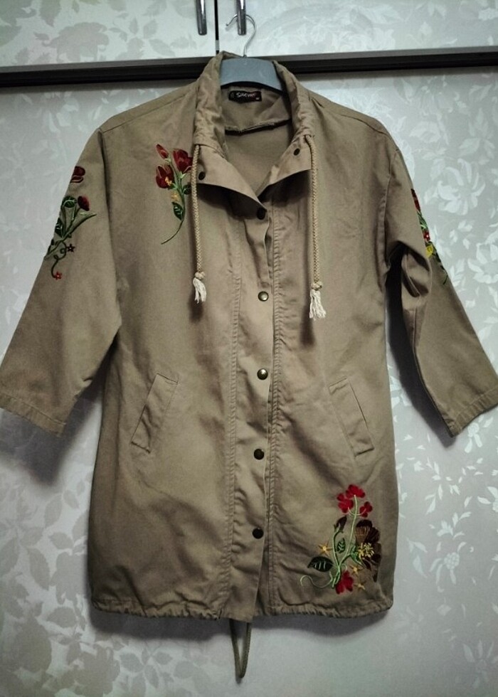 Suem markasına ait haki renk 38 beden bir parka. Taş gibi sapasağlam. Boyu omuzdan 85 cm. Sol dirsek kısmında belli belirsiz bir lekesi var son görsele ekledim fiyata yansıttım.