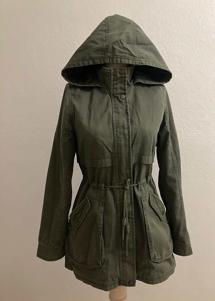 Haki parka hiçbir sorunu yoktur ihtiyaç fazlası çok soğuk havalara uygun değildir xs-m aralığına uyar ilandaki manken m bedendir