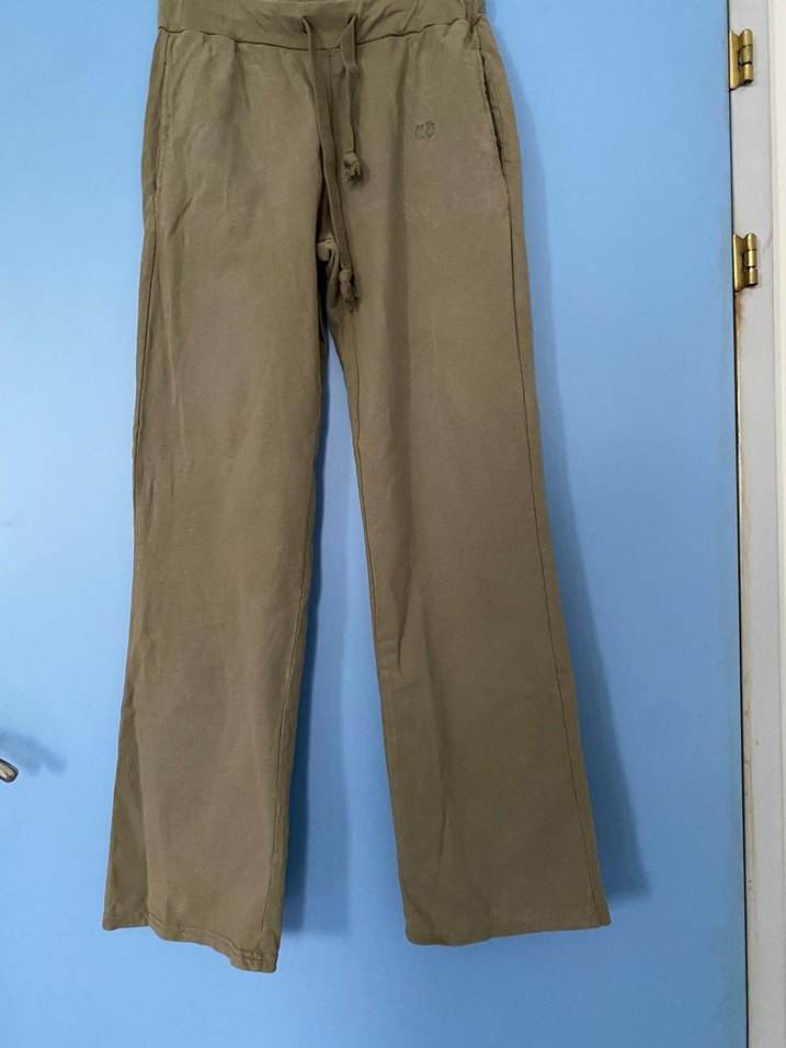 Haki penye kumaştan, salaş kesim eşofman. Rahat kullanım için bel kısmında bağcık bulunur. Günlük kullanıma uygundur.