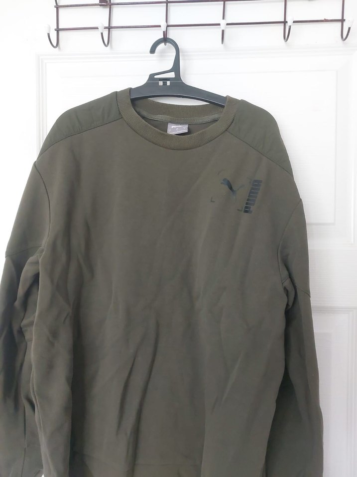 #Haki #Puma Erkek #Sweatshirt, Bisiklet Yaka, Rahat Kesim