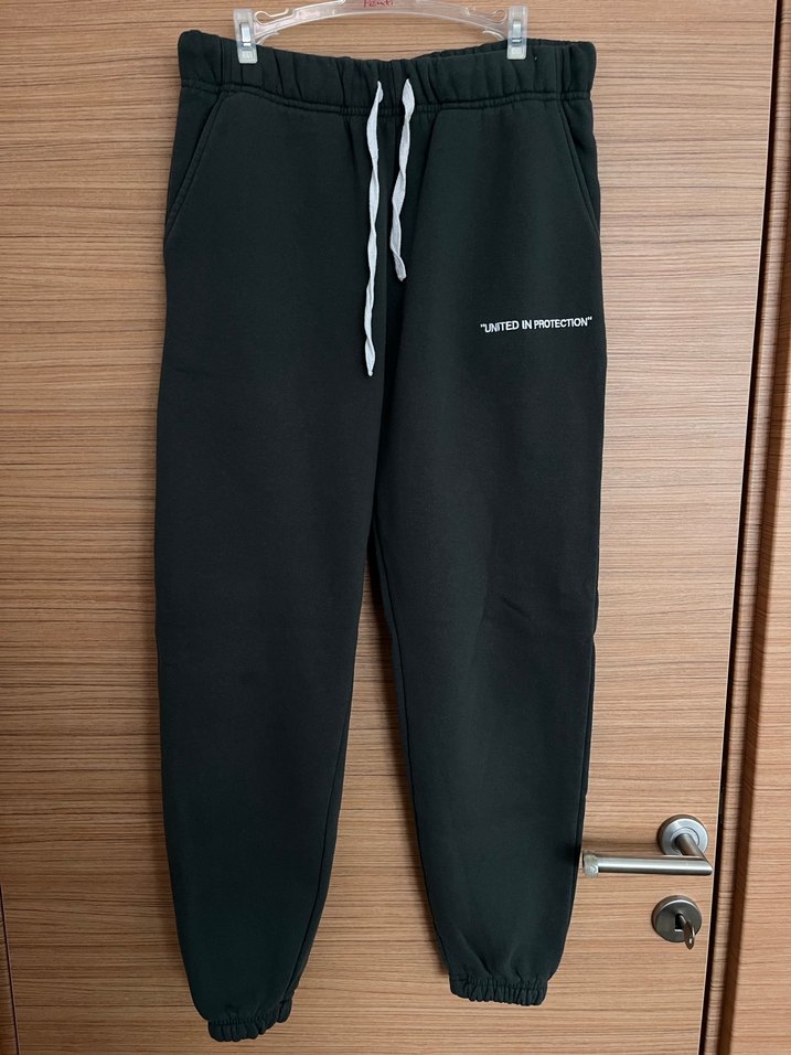 Haki, sentetik kumaştan, elastik bel ve paçalı, bol kesim kadın eşofman altı. Ön kısmında küçük baskılı yazı bulunur, rahat dış mekan kullanımı için uygundur. Grimelange markası kapkalın güzel eşofman az kullanıldı üstü de satışta takım olarak alabilirsiniz
