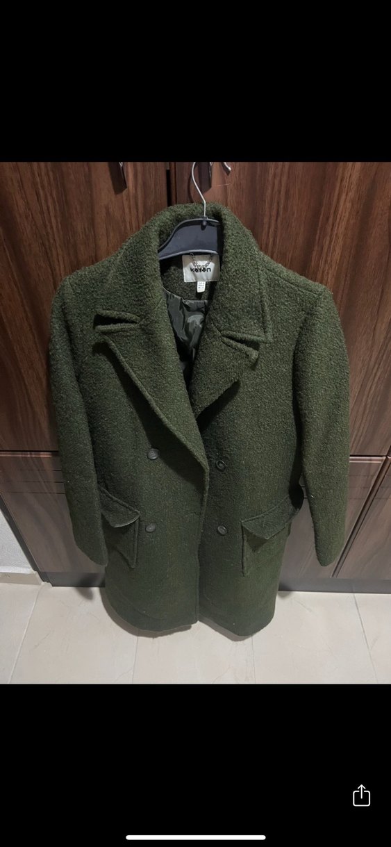Kalın bi kaban ve yün dışı çok sıcak tutuyor xs ama Ben s bedenim rahat oldu. Haki renkli, çift düğmeli ve yakalı kaban. Çok giyemedim çünkü bizim burası için fazla kalın geldi bana. Sıcak tutar ve klasik bir görünüm sağlar.