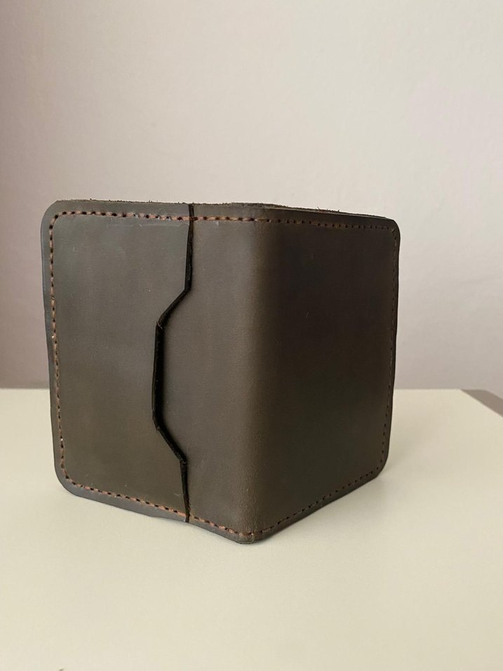 haki renginde, desen içermeyen minimalist erkek cüzdanı. Biker tarzına uygun, sade ve dayanıklı tasarıma sahiptir. ️tamamen el yapımı ve hakiki deridir.